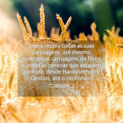 Sisera reuniu todas as suas carruagens, até mesmo novecentas carruagens de ferro, e todas as pessoas que estavam com ele, desde Harosheth dos Gentios, até o rio Kishon.
